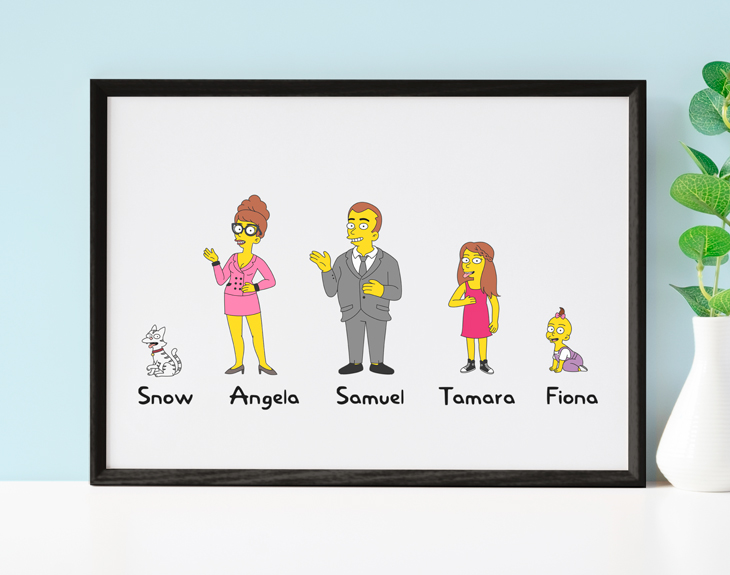 ¿Siempre has querido viajar la loca y caótica ciudad de Springfield? Este misterioso lugar (el cuál no se sabe en qué estado está) ha sido testigo de muchas aventuras increíbles y llenas de llantos y risas, gracias a sus fascinantes habitantes. Apu, Edna Krabappel, el señor Burns... ¡y obviamente la mejor familia de la televisión! Homer, Marge, Bart, Lisa y Maggie son los miembros de esa familia amarilla que nos han acompañado durante más de 30 años. Porque seamos claros... ¿quién no querría formar parte de esa alocada casa? Si conoces a alguien que siempre ha soñado con convertirse en un ciudadano más de Springfield, esta lámina personalizada con marco es el regalo perfecto. En esta lámina podrás añadir hasta 8 personajes, formando tu propia familia Simpson con vuestros personajes. ¿No sabes si encontrarás tu copia amarillo? Tranquilo, ¡tenemos más de 300 personajes! Con este regalo original, por fin tendrás tu yo más Simpson. ¡Cuelga esta lámina en la pared y todas las visitas te verán más animado que nunca! medi Importante: Se pueden escoger hasta un máximo de 6 personajes que aparecerán en la misma línea. Importante: El color del marco puede variar según stock. Importante: Si escoges la opción "versión digital" te enviaremos el diseño por mail en alta resolución. De esta manera, tendrá la calidad necesaria para que puedas imprimirla en cualquier formato. En el formulario de entrega tendrás que seleccionar la opción "Recibir por Email para ahorrar los gastos de envío".
