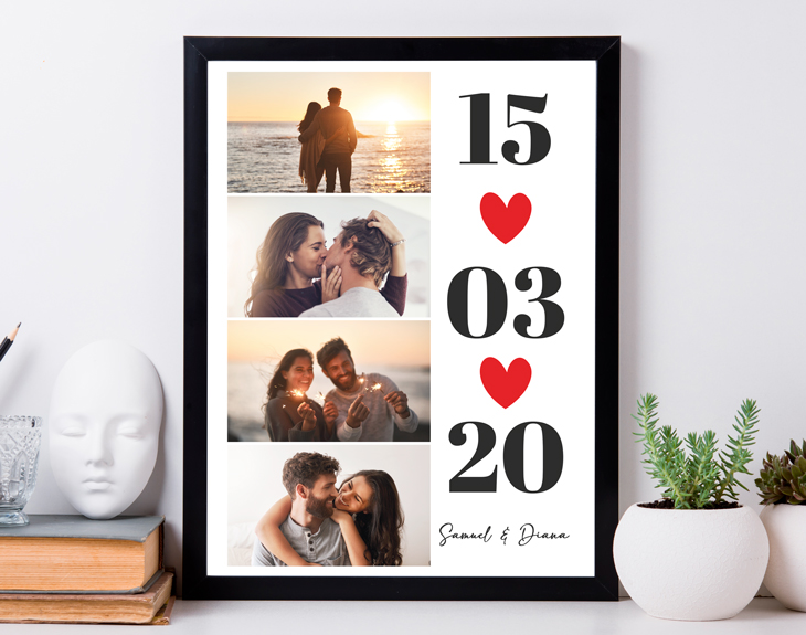 ¿Todavía te acuerdas de cuándo fue la primera cita con tu pareja? Está claro que la mejor manera de recordar esta fecha tan especial es con esta lámina personalizada con diseño "Fecha de amor". Es ideal para decorar vuestra casita con este detalle de lo más personal. Además, se puede convertir en un regalo original para San Valentín, ¡acertarás seguro! Lo más especial de esta lámina es que es personalizable. Puedes personalizar este producto con las fotos que tú quieras. Es ideal para pongas esas fotos en las que salgáis guapísimos, esas fotos de algún viaje o de cualquier momento feliz que hayáis vivido. Así siempre que mire esta lámina no podrá evitar sonreir, ¡le encantará! Personalizar esta lámina es súper sencillo. El primer paso a seguir consiste en añadir el producto al carrito y entrar al área de personalización. Una vez ahí, ya puedes poner las fotos con tu amorcito y nosotros nos encargamos de todo lo demás. Pronto estará perfecto y listo para regalar. ¡Será un original regalo para enamorados! Importante: Si escoges la opción "versión digital" te enviaremos el diseño por mail en alta resolución. De esta manera, tendrá la calidad necesaria para que puedas imprimirla en cualquier formato. En el formulario de entrega tendrás que seleccionar la opción "Recibir por Email para ahorrar los gastos de envío". Importante: El color del marco puede variar según stock.