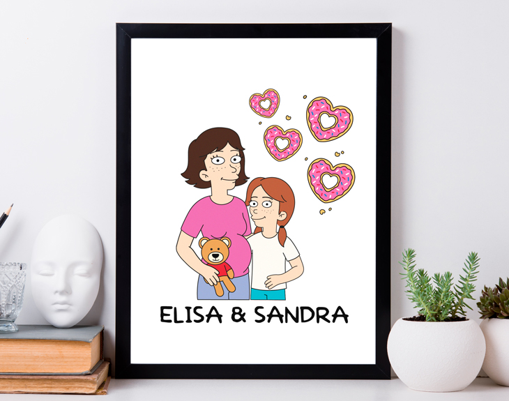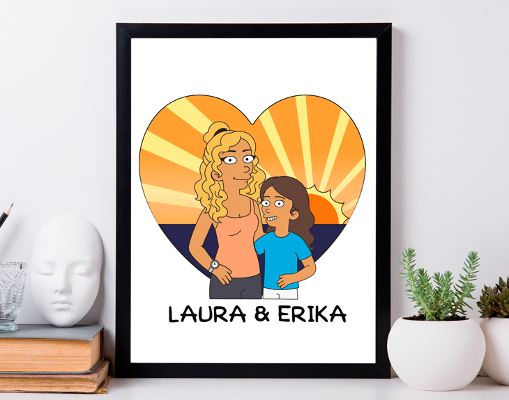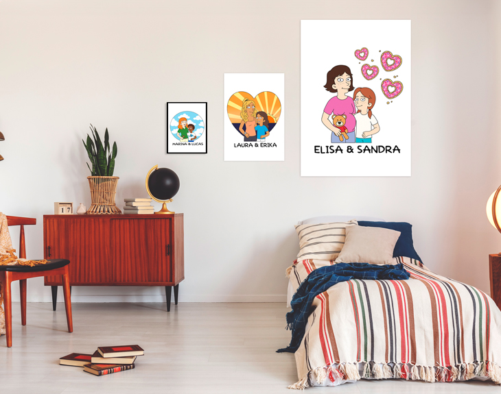 Es imposible comparar a una madre porque todas son únicas en el mundo y cada uno de nosotros tiene la mejor. Nadie puede igualar todo lo que hace pro sus hijos, porque está siempre ahí pase lo que pase. Por eso, si quieres devolverle un poquito de todo lo que ha hecho por ti con un detalle muy especial, esta lámina personalizada es lo mejor que le puedes regalar. Deja a mamá sin palabras cuando reciba este regalo que podrá colocar en cualquier rinconcito de casa. ¡Quedará genial! Tener a una madre como la tuya al lado es algo que no tiene precio, y es que de vez en cuando se merece ser la protagonista y recibir todo el amor del mundo. Esta original lámina es ideal para decirle cuanto la quieres y que se acuerde siempre que la vea. Además, contamos con dos tamaños de lámina, dependiendo del espacio que tengáis en casa: elige A4 o gigante, este último con medidas de 60 x 85 centímetros. ¡El A4 incluirá marco para tener el pack completo! Al personalizar esta lámina podrás convertiros a tu madre y a ti en auténticos dibujos animados. Añade le producto al carrito y entra en el área de personalización. Ahí podrás crear tus propios personajes con todos los detalles necesarios para que sean igualitos que vosotros. Esta lámina se convertirá en vuestro adorno favorito de casa y todos vuestros invitados querrán una igual. ¡Es adorable!