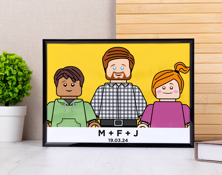 Muchas veces cuando se acerca alguna fecha especial, no sabemos qué regalar y siempre queremos ser originales y hacer el regalo perfecto. Si dentro de poco tienes que hacer un regalo a tu padre, ya sea por su cumpleaños, por un amigo invisible, por el Día del Padre o, simplemente, por ser el mejor papá del mundo, nuestra lámina personalizada con diseño "Padre Lego" será el mejor detalle de todos. Y es que si cuando eras pequeño te pasabas las tardes enteras jugando con tu papá con las famosas piezas Lego, está es la mejor de agradecerle por esos buenos momentos. Nuestra lámina es personalizable. Esto quiere decir que eres tú quien crea a estos avatares tan chulos. Hay un montón de rasgos y accesorios diferentes para elegir, seguro que consigues que os representen a tu papá y a ti. ¡Triunfarás seguro! Personalizar esta lámina es súper sencillo. El primer paso a seguir consiste en añadir el producto al carrito y entrar al área de personalización. Una vez ahí, ya puedes crear a estos avatares Lego desde cero. Pronto estará perfecta y lista para regalar. ¡Será un original regalo para padres! Importante: Si escoges la opción "versión digital" te enviaremos el diseño por mail en alta resolución. De esta manera, tendrá la calidad necesaria para que puedas imprimirla en cualquier formato. En el formulario de entrega tendrás que seleccionar la opción "Recibir por Email para ahorrar los gastos de envío". Importante: El color del marco puede variar según stock.