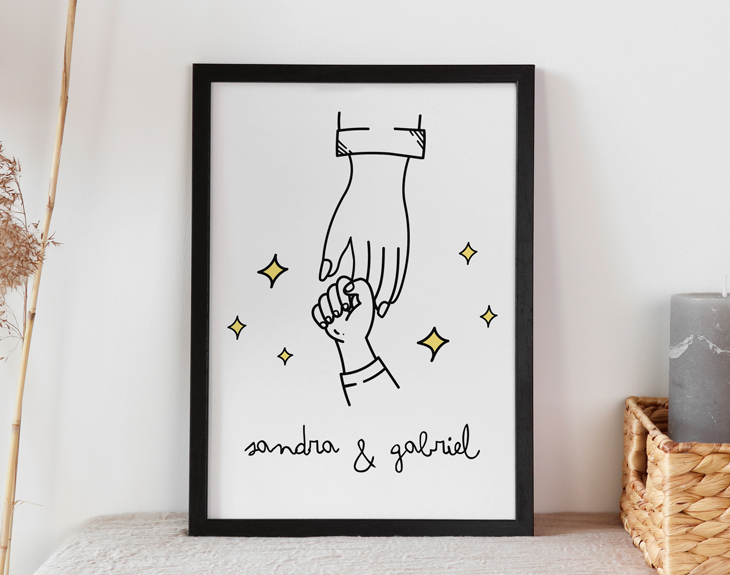 ¡Se acerca una de las fechas más especiales del año: el Día de la Madre! Y es que este día es el momento perfecto para sorprender a todas las mamis y también abuelas con un regalo único. Esta lámina personalizada es perfecta para tener un detalle con esa persona que desde pequeño te ha enseñado, te ha querido y te ha educado para ser cada día mejor. ¡Y eso se merece un regalo único y diferente! Si buscas un regalo emotivo y que consiga dejar sin palabras a mamá o a la abuela, sin duda esta original lámina es todo lo que necesitas. Es un detalle que podrán ver siempre que lleguen a casa y que les hará recordar todos los buenos momentos vividos. Además, podrás elegir la opción que más te guste en cuanto al tamaño de la lámina: A4 con marco, grande o gigante. ¡Hay para todos los gustos! Y obviamente la mejor parte de este regalo es personalizar la lámina a tu gusto. Elige el tamaño, añade el producto al carrito y completa este precioso diseño que te dejamos con los nombre que tú quieras. Nosotros nos encargamos de que quede perfecto y listo para regalar. ¡Será un detalle increíble! Importante: Si escoges la opción "versión digital" te enviaremos el diseño por mail en alta resolución. De esta manera, tendrá la calidad necesaria para que puedas imprimirla en cualquier formato. En el formulario de entrega tendrás que seleccionar la opción "Recibir por Email para ahorrar los gastos de envío". Importante: El color del marco puede variar según stock.