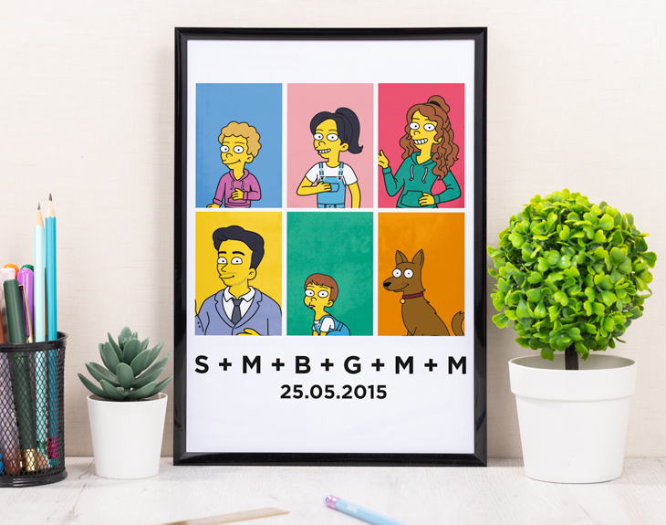 ¿Estás buscando la decoración ideal para tu casita? Nuestra lámina Simpson pop es ideal para colgar en la pared de tu habitación o del salón. ¡Quedará genial! Le dará un toque personal y original. Además, se puede convertir en un regalo perfecto para ese amigo que se acaba de mudar. Si eres un auténtico fan de los Simpson, esta lámina es perfecta para decorar tu habitación. Lo mejor es que es personalizable, esto quiere decir que eres tú quien diseña a los personajes Simpson del estampado. Puedes elegir entre diseñar mínimo un personaje o máximo 6. ¡Podrás crear tu propia familia Simpson! Tienes para elegir entre un montón de rasgos y accesorios, seguro que encuentras los que os representen. ¡Es genial! Y te preguntarás… ¿cómo puedo personalizar esta lámina? Es súper sencillo. Lo primero es añadir el producto al carrito y entrar al área de personalización. Una vez ahí, ya puedes crear a tus avatares desde cero, ¡ya verás qué divertido! Pronto estará perfecto y listo para regalar. ¡Será un regalo muy original! Importante: Si escoges la opción "versión digital" te enviaremos el diseño por mail en alta resolución. De esta manera, tendrá la calidad necesaria para que puedas imprimirla en cualquier formato. En el formulario de entrega tendrás que seleccionar la opción "Recibir por Email para ahorrar los gastos de envío". Importante: El color del marco puede variar según stock.