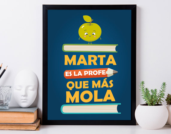 ¿Tienes el profe o la profe que más mola del mundo? Entonces esta lámina personalizada es perfecta para agradecérle todo lo que hace por vosotros.Es hora de darle una sorpresa muy especial...¡Un regalo precioso de sus alumnos favoritos! Porque además de enseñaros todo lo que sabe, se preocupa realmente por vosotros. Os escucha y lo más importante, os comprende e intenta ayudaros en todo. ¡No todos los profes son así de guays! Antes de pagar te preguntaremos el nombre y si es profesor o profesora. Además, tienes la opción de adquirir la lámina enmarcada. Importante: El color del marco puede variar según stock. Podrás elegir esta lámina en dos tamaños: A4 o gigante, este último con unas medidas de 85 x 60 centímetros.