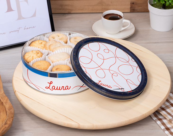 Seguro que tú también conoces a esa persona que adora las galletas, ¡están riquísimas! Si quieras sorprenderla por alguna ocasión especial, tenemos el regalo perfecto. Se trata de nuestra lata de galletas personalizada con diseño "Hilo rojo". ¡Le encantará! Y es que una vez que las galletas se acaben, esta lata se puede utilizar para guardar los míticos hilos de costura. ¡Es perfecta! Además, lo mejor que tiene es que es personalizable, podrás escribir el nombre que tú quieras. ¡Quedará genial! Esta lata de galletas es ideal para un cumpleaños o incluso para un amigo invisible. Personalizar esta lata de galletas es súper sencillo. El primer paso a seguir consiste en añadir el producto al carrito y entrar al área de personalización. Una vez ahí, ya puedes escribir el nombre que tú quieras. Pronto estará perfecto y listo para regalar. ¡Será un original regalo! Diámetro: 19 cm. Peso: 277g aprox.