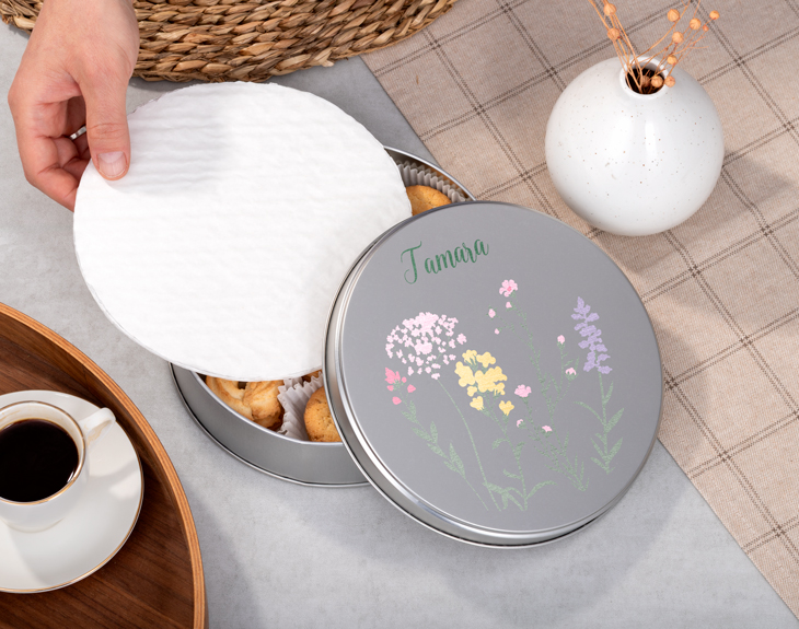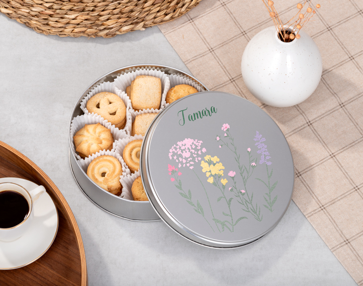 ¿Acaso hay alguien a quien no le gusten las galletas? ¡Está claro que no, alegran el día a cualquiera! Por eso, si quieres soprender a esa persona que adora los dulces, tenemos el regalo perfecto. Se trata de nuestra lata de galletas personalizada con diseño "Florecita". ¡Le encantará! Lo mejor de esta lata, a parte de ir llena de galletas, es que es personalizable, podrás escribir el nombre de esa persona tan especial y además, escoger el estampado de florecillas que más te guste. ¡Será un regalo súper original! Y cuando se terminen las galletas, podrás usar esta lata para lo que tú quieras. Personalizar esta lata de galletas es súper sencillo. El primer paso a seguir consiste en añadir el producto al carrito y entrar al área de personalización. Una vez ahí, ya puedes escribir el nombre que tú quieras. Pronto estará perfecto y listo para regalar. ¡Será un original regalo! Diámetro: 19 cm. Peso: 277g aprox.