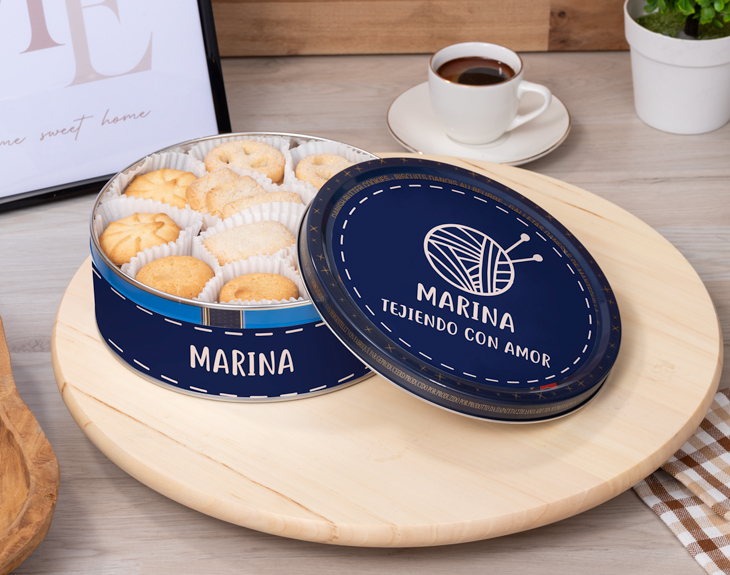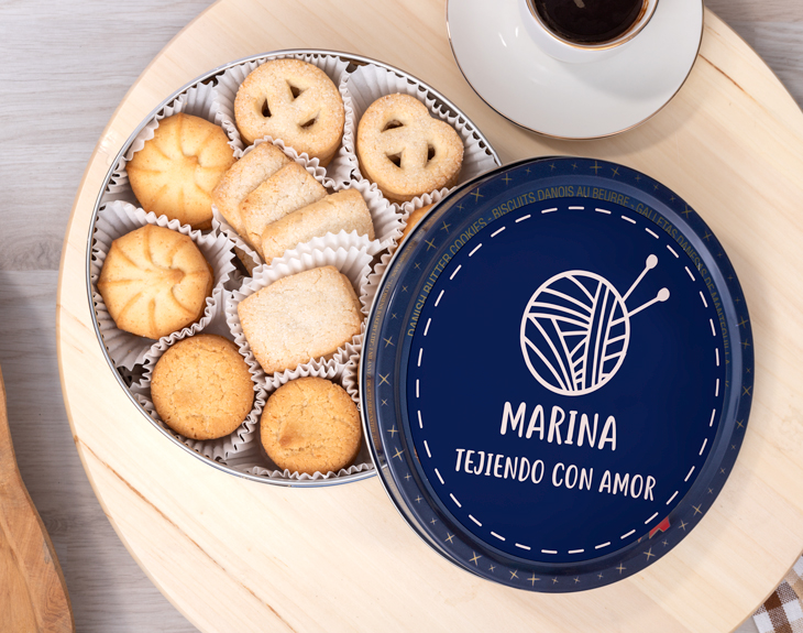 Seguro que alguna vez te ha pasado de ir a casa de tu abuela y encontrar una lata de galletas y que dentro esté llena de hilos de costura. ¡Nos ha pasado a todos! Por eso, estamos seguros de que esta lata de galletas personalizada con diseño "Tejiendo con amor" será el regalo perfecto para cualquier abuela. Y es que le podrás regalar esta lata rellena de galletas y una vez que se terminen, podrá usar la caja para lo que ella quiera. Además, lo mejor es que es personalizable, podrás escribir el nombre de la mejor abuela del mundo en la tapa de esta lata. ¡Quedará genial! Personalizar esta lata de galletas es súper sencillo. El primer paso a seguir consiste en añadir el producto al carrito y entrar al área de personalización. Una vez ahí, ya puedes escribir el nombre que tú quieras. Pronto estará perfecto y listo para regalar. ¡Será un original regalo! Diámetro: 19 cm. Peso: 277g aprox.