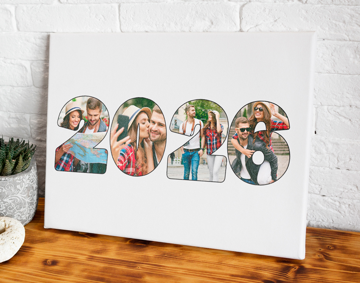 Es el lienzo perfecto para desear una Feliz Navidad a toda la familia. El número 2026 está personalizado con fotos que tú elijas. Cada número tendrá una foto, de tal manera que empezarás el año nuevo con muchas ganas e ilusión. Cuélgalo en tu casa y sorprende a toda tu familia esta Navidad. Un regalo para Navidad muy original y para toda la vida. • Los laterales quedan envueltos con el propio lienzo. • Bastidor de 3 cm de madera samba. • Tintas con protección para rayos UV. • Se entrega montado, listo para colgar.