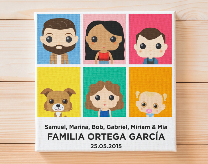 No hay mejor forma de decorar tu hogar que con adornos de lo más personales y diferentes al resto. Si vives en pareja, con tu familia o incluso con tus mejores amigos, seguro que os encantará decorar cualquier estancia de la casa con este precioso lienzo personalizado. Su estilo pop hace que sea una pieza única y llena de personalidad. Pero lo mejor es que podrás poner tus propios personajes Tinok. ¡Es ideal! Sorprende a todos tus invitados con este original lienzo cada vez que visiten tu casa. Y es que este adorno es perfecto para decorar y dar un toque diferente y muy acogedor a cualquier rinconcito: el salón, la habitación, tu despacho o la estancia que quieras. ¡Quedará genial en cualquier sitio! Además, podrás elegir el tamaño que quieras desde 30x30, 40x40, 45x45... ¡Así hasta 95x95 centímetros! Este regalo es para los fanáticos de los Tinoks, por eso, te tocará personalizar este lienzo con tus propios personajes. Escoge el tamaño del lienzo, añade el producto al carrito y entra en el área de personalización. Ahí, podrás elegir el collage con el número de personajes que quieras (1 a 6) y empezar a crear tus propios Tinoks desde cero clicando en cada color. ¡Así de fácil! Después escribe el texto que quieras y listo para regalar. ¡No hay detalle más especial que este! • Los laterales quedan envueltos con el propio lienzo. • Bastidor de 3cm de madera samba. • Impresión a 1440dpi. • Tintas con protección para rayos UV. • Lienzo de algodón de alta calidad ultra blanco de 415 gramos. • Se entrega montado, listo para colgar. • Consulte precio para otras medidas.