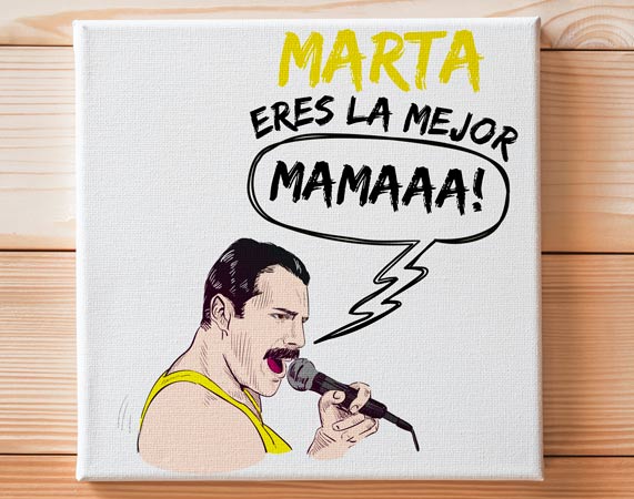 Nuestro lienzo más roquero es perfecto para todas aquellas mamás apasionadas por la buena música. Si en tu casa Mercury es como de la familia y todos vuestros días empiezan con rock, este lienzo personalizado es perfecto para tu madre. La mejor forma de unir sus dos pasiones en un solo regalo: la música y sus hijos. Demuéstrale que es la mejor mamaaa del mundo y conseguirás sacar su lado más tierno. • Los laterales quedan envueltos con el propio lienzo. • Bastidor de 3cm de madera samba. • Tintas con protección para rayos UV. • Se entrega montado, listo para colgar.