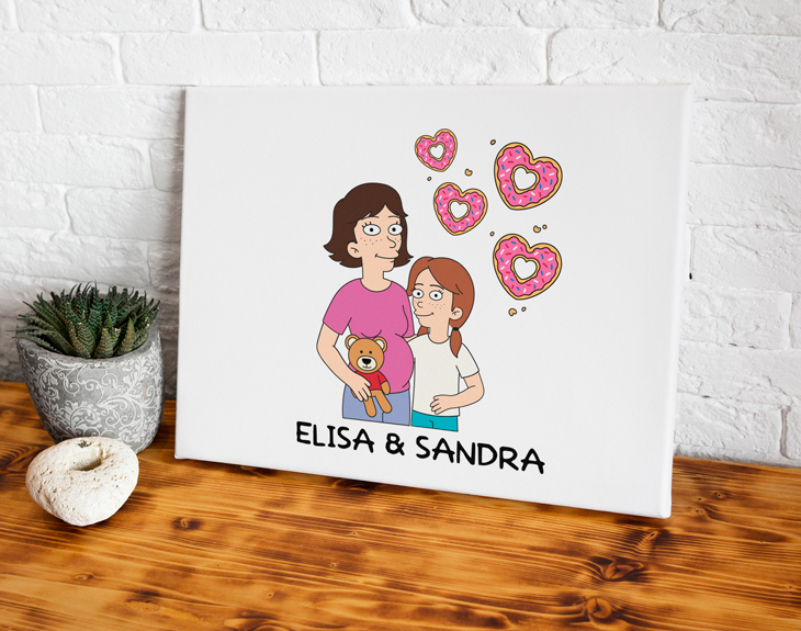 Sabemos que en ocasiones es muy complicado sorprender a nuestras madres. Muchas veces no sabemos qué regalar porque siempre queremos que todo sea perfecto. Por ello, si te has quedado sin ideas, este lienzo con diseño Cartoon es la solución. Es el regalo perfecto para hacer por el Día de la Madre, su cumpleaños, en alguna ocasión especial o simplemente por ser la mejor madre del mundo. Este lienzo le encantará. El detalle más especial que tiene es que se puede personalizar, lo que quiere decir que tú podrás crear a estos personajes Cartoon. Tienes para elegir entre un montón de opciones diferentes de accesorios y rasgos, seguro que consigues que estos dibujos os representen. Y tenemos hasta 10 tamaños diferentes, para que siempre puedas encontrar el tamaño perfecto para la pared. Cada vez que lo vea se acordará de esas tardes tan divertidas viendo juntos dibujos animados, sin duda, no podrá contener la sonrisa. Personalizar este producto es súper sencillo. Lo primero, es añadir el producto al carrito y entrar al área de personalización. Una vez ahí, lo único que falta es crear a los personajes desde cero, ¡ya verás qué divertido! Nosotros nos encargamos de que quede perfecto. • Los laterales quedan envueltos con el propio lienzo. • Bastidor de 3cm de madera samba. • Tintas con protección para rayos UV.