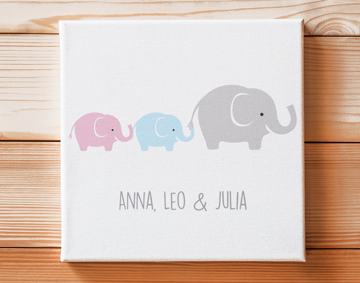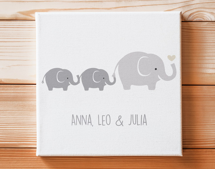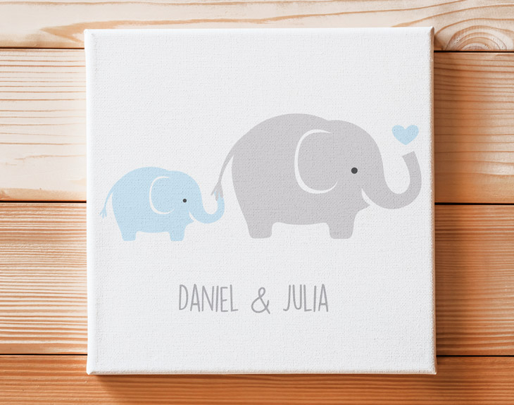No hay duda de que una madre es la persona más importante de nuestra vida porque siempre está ahí para nosotros, pase lo que pase. Además una madre tiene muchas cosas en común con las mamá elefante. Por si no lo sabías, ambas protegen siempre a sus crías y no dejan que les pase nada malo, como cualquier madre haría por sus hijos. Por eso, se merecen todo el amor y cariño del mundo. Sorprende a mamá con este lienzo personalizado para que recuerde todos los días lo importante y bonito que es ser madre. Le encantará hacerlo con este diseño que hace homenaje a mamá elefante y sus pequeños. ¡Será su regalo favorito! Sorprender a mamá no siempre es fácil, pero con este original lienzo seguro que lo consigues. Le hará mucha ilusión recibir este súper detalle en el Día de la Madre, su cumpleaños o cualquier otra fecha donde ella sea la protagonista. Se emocionará al ver este diseño tan bonito y entrañable con su nombre y el de sus pequeños tesoros. Podrá poner este bonito lienzo en cualquier rincón de la casa y darle un toque único y muy especial. Personaliza este lienzo para que sea el mejor regalo del mundo. Elige el tamaño de lienzo que quieres y añade el producto al carrito. Después, podrás elegir qué diseño se ajusta más con vuestra familia y por último escribe los nombres para que quede perfecto. Nosotros nos encargamos del resto y ya estará listo para entregar. ¡Se quedará sin palabras al recibir este lienzo! • Los laterales quedan envueltos con el propio lienzo. • Bastidor de 3cm de madera samba. • Impresión a 1440dpi. • Tintas con protección para rayos UV. • Lienzo de algodón de alta calidad ultra blanco de 415 gramos. • Se entrega montado, listo para colgar.