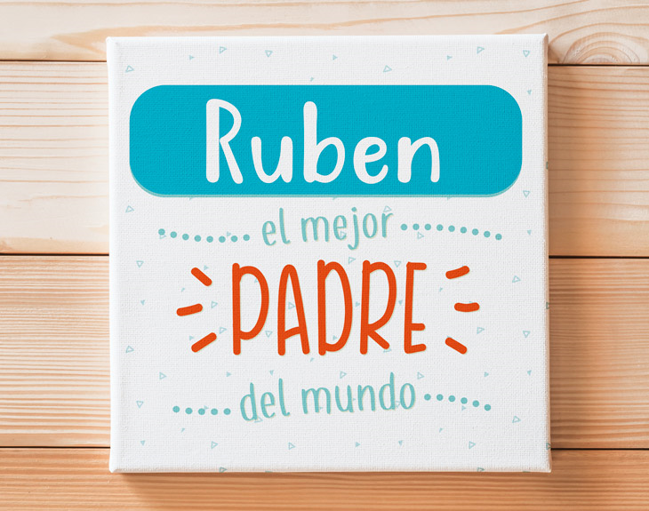¿Quieres darle una sorpresa a tu padre y no sabes cómo? Este lienzo personalizado es la opción perfecta para sacarle una gran sonrisa. Aprovecha su cumpleaños, el Día del Padre o cualquier otra ocasión especial para darle una sorpresa a tu papá que jamás olvidará. Nuestros lienzos personalizados son perfectos para darle las gracias por todo lo que ha hecho por ti y para decirle lo mucho que le quieres. Seguro que a tu papá le hace mucha ilusión un detalle como este. Para personalizarlo solamente nos tendrás que decir su nombre y nosotros lo grabaremos en este diseño tan chulo. ¡Le encantará! • Los laterales quedan envueltos con el propio lienzo. • Bastidor de 3cm de madera samba. • Impresión a 1440dpi. • Tintas con protección para rayos UV. • Lienzo de algodón de alta calidad ultra blanco de 415 gramos. • Se entrega montado, listo para colgar.