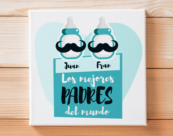 Seguro que papá es todo un crack. ¿Es el típico padre que siempre está ahí en cualquier situación? Más de una vez te habrá salvado de algún problema, o simplemente te ha regalado su cariño y su amor cuando más lo necesitabas. No todos los padres son así de perfectos y de afectuosos con sus hijos. Sin embargo, si tienes uno así, creo que debes agradecérselo de la manera más bonita posible. Todos esos grandes padres que crían y ayudan a sus hijos de manera incondicional merecen un regalo por el Día del padre... ¿y qué mejor que un lienzo personalizado para sorprender a papá en una fecha tan señalada como esta? Ojo, este lienzo no es para cualquier padre. ¡Debe ser para los mejores padres del mundo! Si crees que el tuyo es el papá perfecto, creemos que has encontrado el detalle perfecto para él. Además, podrás elegir qué medidas quieres para tu lienzo cuadrado: desde 30x30cm a 95x95cm. ¡Tenemos cualquier medida para que puedas escoger el que más se ajuste a tu casa! Añade vuestros nombres y así, cada vez que vea este regalo original, recordará lo buen padre que ha sido a lo largo de todos estos años. • Los laterales quedan envueltos con el propio lienzo. • Bastidor de 3cm de madera samba. • Impresión a 1440dpi. • Tintas con protección para rayos UV. • Lienzo de algodón de alta calidad ultra blanco de 415 gramos. • Se entrega montado, listo para colgar.
