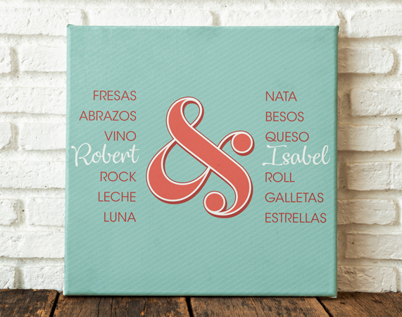 Mantener la chispa encendida solo se consigue con pequeños detalles del día a día. Si quieres que tu pareja siga tan enganchada a ti como el primer día, es el momento de sorprenderla con este lienzo personalizado. Si vosotros también hacéis la combinación perfecta, este lienzo es perfecto para decorar vuestro hogar. Un detalle precioso y muy original para dejar a tu pareja boquiabierta. ¡Le encantará! • Los laterales quedan envueltos con el propio lienzo. • Bastidor de 3cm de madera samba. • Tintas con protección para rayos UV. • Se entrega montado, listo para colgar.