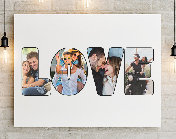 Love, love, love. Esto es lo que predican muchos artistas cuando escriben sus canciones. Nosotros hemos convertido la palabra del amor en este lienzo personalizado para que se lo regales a tu pareja el día de San Valentín. Si os acabáis de mudar juntos y quiere darle una sorpresa romántica, personaliza el lienzo con cuatro fotos y tendrás la palabra love diseñada con vuestra historia de amor. • Los laterales quedan envueltos con el propio lienzo. • Bastidor de 3cm de madera samba. • Tintas con protección para rayos UV. • Se entrega montado, listo para colgar.