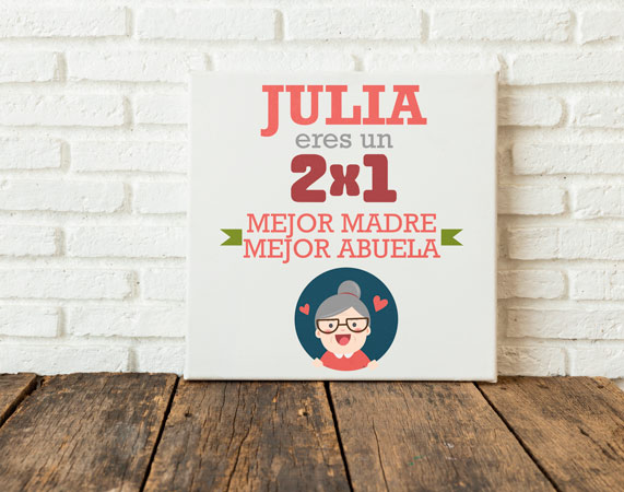 Nuestro lienzo cuadrado personalizado es perfecto para darle las gracias a una madre que lo da todo para cuidar a sus hijos y también a sus nietos. Si tu madre es ejemplar, porque te ha dado la mejor educación y, además, es la abuela más enrollada del mundo, este lienzo va para ella. ¡Le encantará! • Los laterales quedan envueltos con el propio lienzo. • Bastidor de 3cm de madera samba. • Impresión a 1440dpi. • Tintas con protección para rayos UV. • Lienzo de algodón de alta calidad ultra blanco de 415 gramos. • Se entrega montado.