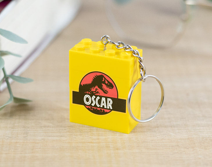 Los dinosaurios se extinguieron hace millones de años y desaparecieron por completo de la Tierra. Menos mal que fue así, porque no sabemos si habríamos podido convivir con unos animales tan grandes y algunos tan agresivos... ¿o sí lo sabemos? Gracias a las películas de 'Jurassic Park' o 'Jurassic World' nos podemos hacer una idea de cómo los humanos tratarían con los dinosaurios. Si esta saga, que ha mejorado y se ha mantenido con el paso de los años, es tu favorita y te encanta ver todas sus películas, te encantará tener este llavero de bloques personalizado con el logo oficial de 'Jurassic Park' No existe regalo más original y mejor para un fanático de esta saga de películas que este original llavero de color en el que podrás personalizar el logo de 'Jurassic Park'. Pero lo primero que tendrás que hacer es elegir el color de tu llavero, te proponemos seis opciones que son para todos los gustos: azul, verde, amarillo, rojo, rosa y naranja. ¡Elige el que más te guste! Y para terminar de personalizar este llavero de bloques, tendrás que añadir el nombre que tú quieras para que aparezca encima del logo oficial de las películas. Mientras lo personalizas, podrás ver cómo va a quedar una vez que finalices la compra y así será como te llegue a casa. ¡Llévalo siempre contigo! Medidas: 4 x 3 centímetros.