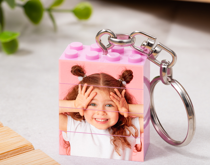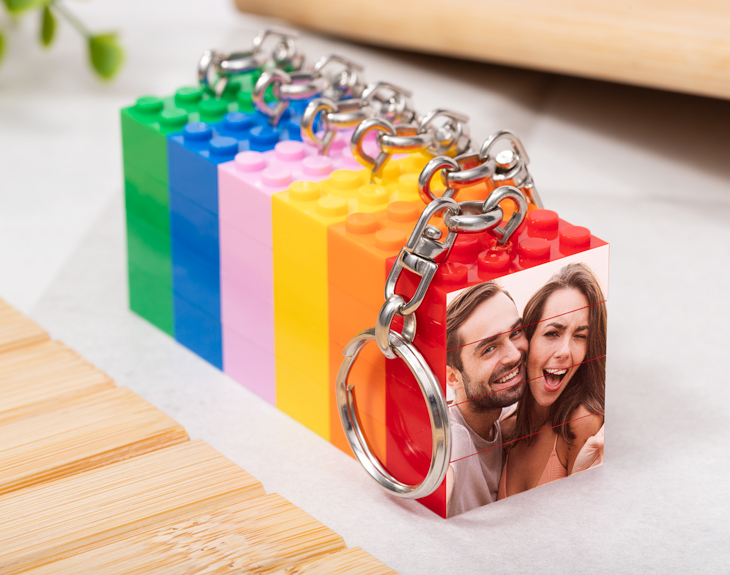 Nosotros creamos nuestro propio universo. Tenemos ese poder desde que éramos bien pequeños y jugábamos con los clásicos bloques de construcción. Cualquier niño ha utilizado su imaginación para crear mundos de fantasía, castillos de colores y casas de ensueño. ¿Por qué no seguir haciéndolo pero ahora con unos cuantos años más? Da un poco de color y diversión a la rutina gracias a este llavero de bloques personalizado. Nuestro llavero con bloques con color y foto es similar a Lego, por lo que siempre te recordará a esos grandes momentos que viviste siendo un crío. Este llavero puede llevar el color que quieras entre los seis colores disponibles (rojo, verde, azul, amarillo, rosa o naranja), y está compuesto pues esas piezas con las que hacíamos de nuestros sueños realidad. Este llavero podrás llevarlo siempre contigo. ¡Ya sea en el trabajo o en clase! ¿Qué puede llevar para hacer que este regalo original sea todavía más único? Añade esa imagen que siempre os toca el corazón al llavero. En el diseñador podrás llevar a cabo la personalización que quieras. ¡Lleva tus momentos favoritos siempre contigo! Medidas: 4 x 3 centímetros.