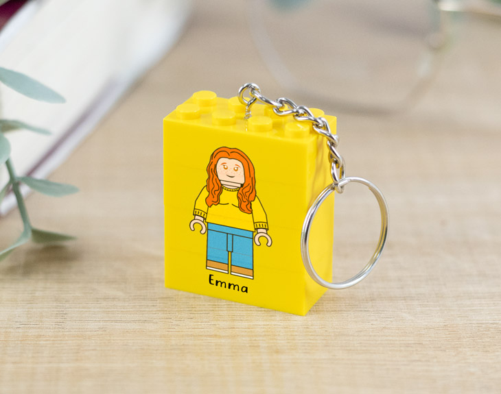 Los Lego han marcado un antes y un después en la infancia de muchos de nosotros. De ser unos simples bloques que se montaban unos con otros, este juguete ha evolucionado hasta tener sus propios muñecos y hasta una película. Con estos bloques de colores podías ser todo un constructor o arquitecto de tus propios proyectos y formar tu propio mundo. ¿Por qué no seguir haciéndolo pero con unos cuantos años más? Da un poco de color y diversión a la rutina gracias a este llavero de bloques personalizado que será el regalo perfecto. Este original llavero será el mejor regalo del mundo para asegurarte de que la persona que lo reciba nunca pierdas las llaves. Siempre las tendrá a mano y no le costará encontrar este adorable bloque de piezas. Además, podrás elegir el color que quieres para este súper llavero entre los seis colores que hay disponibles (rojo, verde, azul, amarillo, rosa o naranja). ¡Tenemos para todos los gustos! Si vas a llevar este producto siempre contigo, tienes que personalizar este llavero a medida. Tendrás que elegir o crear tu propio muñeco de Lego, para que sea igual que tú o la persona a la que se lo vas a regalar. Seguro que le encanta verse como un auténtico personaje de Lego. ¡Regala el llavero más divertido! Medidas: 4 x 3 centímetros.