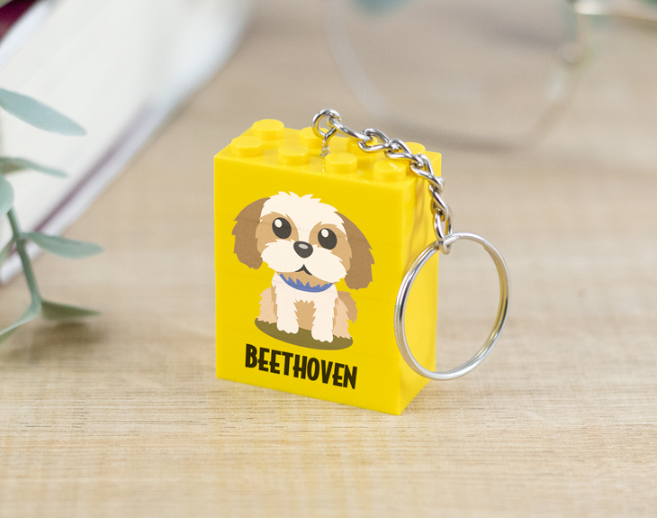 Si para ti los perros son las mejores mascotas del mundo y no puedes vivir sin esos adorables animales, sabrás que el mejor regalo que le puedes hacer a alguien que ame a los animales, es algo relacionado con su querida mascota. Los perretes son las mascotas más buenas del mundo, son leales y no piden nada a cambio, solo cariño y atención. Por eso, si quieres sorprender a esa persona amante de los perros, tienes que regalarle este llavero de bloques personalizado impreso con su mascota. Si estás pensando en un regalo diferente y único para cualquier celebración, este original llavero de color es perfecto para cualquier persona que no pueda vivir sin su pequeño peludo de cuatro patas. Es perfecto para llevarlo en las llaves de casa, en las del coche o enganchado donde tú quieras. Además, siempre tendrás presente a tu mascota vayas donde vayas. ¡Es el mejor regalo del mundo! Y para rematar este precioso regalo, tendrás que personalizar tu propio llavero. Primero elige el color entre las seis opciones que te proponemos: rojo, azul, verde, amarillo, rosa o naranja. Después, tendrás que elegir la raza de perro que quieras entre más de 75 opciones y finalmente añade el nombre de la mascota. Con esto, el llavero ya estará listo para ser entregado y que esa persona lo disfrute mucho. Medidas: 4 x 3 centímetros.