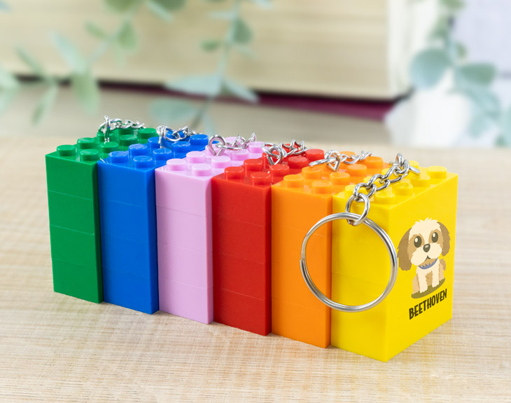 • Llavero de bloques de color personalizado. • Tarjeta Recordatoria.