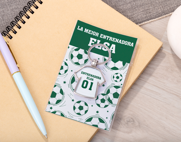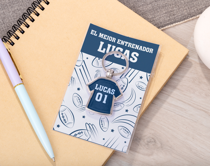 Si el rugby o el fútbol son las pasiones de tu entrenador y su dedicación al equipo es insuperable, este llavero camiseta personalizado es el detalle ideal para agradecerle todo su esfuerzo. ¡El detalle perfecto para los apasionados del deporte en equipo! ¡Este llavero es personalizable! Podrás escribir el nombre de tu entrenador y el número de camiseta que desees, además de escoger el color de tu equipo. Y como si fuera poco, incluye un cartoncito personalizable donde podrás añadir un mensaje único, haciéndolo aún más especial. Disponible con diseños de pelotas de rugby o fútbol, perfectos para los verdaderos fanáticos de estos deportes. Personalizar este llavero camiseta es muy sencillo: solo tienes que añadir el producto al carrito, acceder al área de personalización y escribir el número y nombre que prefieras en el llavero, además del mensaje que quieras en el cartoncito. En pocos pasos, tendrás el regalo perfecto, listo para sorprender al mejor entrenador. ¡Será un regalo original para entrenadores que reflejará su pasión por el deporte y la huella que deja en su equipo!