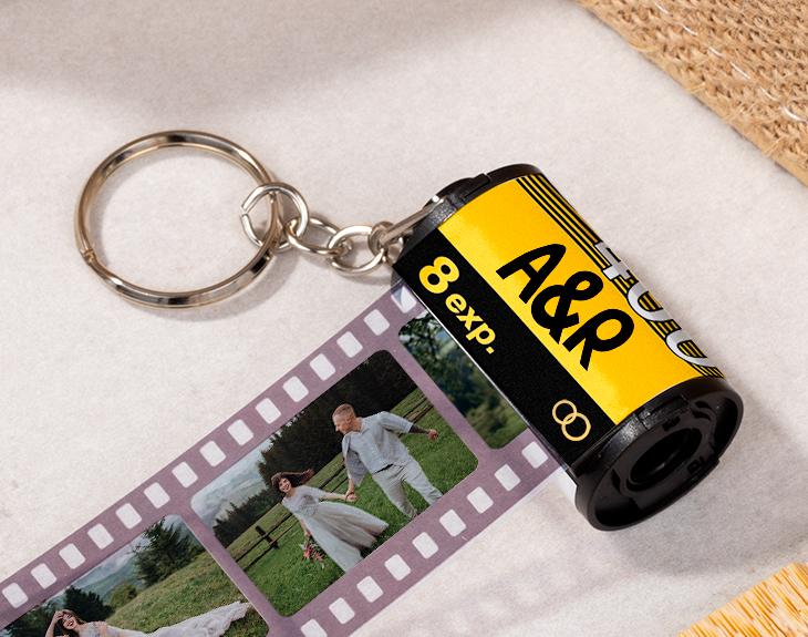 Y por fin llegó el día más importante de vuestras vidas. El amor y el cariño indudable del que habéis disfrutado a lo largo de vuestra relación de pareja se ha convertido en un compromiso, y no cualquier compromiso. Casarse es un compromiso enorme, y estamos seguros de que el día de vuestro enlace fue el más feliz de vuestras vidas. Al fin y al cabo, te has casado con una persona a la que amas con locura, con la que quieres pasar el resto de tu existencia. ¡Eso es algo precioso! Estamos seguros de que esa celebración fue algo increíble, una fiesta que nunca vais a olvidar. En vuestra memoria habrán quedado muchísimos momentos: el fin de la ceremonia, el banquete, ese primer baile como matrimonio... ¿te gustaría tener una forma particular de guardar todos los recuerdos de la boda? Este llavero de carrete de fotos personalizado no solo es un objeto de decoración retro, sino que también guardará todas las imágenes de vuestro enlace. Este llavero es un carrete de fotos con nombre y ocho imágenes, que podrás personalizar a tu gusto. Primero, deberás incluir un texto en el diseño, ya sea el nombre de tu marido o esposa, vuestras iniciales, o lo que deseéis. Tras esto, solo tendrás que escoger las fotografías que aparecerán en la película. ¡Podrás llevar vuestra boda a cualquier lado gracias a este regalo original! Número de fotos para el carrete: 8. Medidas del carrete: 4,5 cm de alto x 9 cm de ancho circular. Medidas de la tira de fotos: 3,5 x 30 cm. Importante: el orden de las fotos añadidas es aleatorio. Materiales: plástico (cilindro), acetato (tira de fotos). Instrucciones: para desplegar la tira de fotos, hay que tirar firme pero delicadamente el rollo de acetato hacia fuera mientras se sujeta el cilindro. La propia tira se frena automáticamente sin salirse una vez se llega a la última imagen. Para recogerla, recomendamos sujetar firmemente el carrete por los lados y girar hacia dentro con la anilla o con la mano el círculo que sobresale en la parte de arriba; si no, también se puede sujetar el cilindro desde esa parte superior y darle vueltas a toda la superficie.
