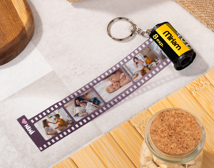 ¿Cómo vas a conservar los recuerdos tan especiales que tienes con tu madre? Los álbumes de foto eran muy bonitos pero ya son menos frecuentes, y asi los dejas en tu móvil se perderán entre las miles de imágenes de tu galería. Queremos ayudarte a inmortalizarlos de la manera más sencilla y emotiva con nuestro llavero de carrete de fotos personalizado. Así tu madre podrá llevarlas siempre consigo en el bolsillo y deslizarlo para poder revivir cada uno de esos mágicos instantes contigo, incluso cuando no estés con ella.