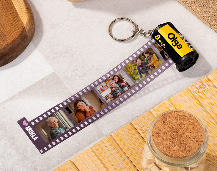 ¿No sería genial poder recopilar todos sus recuerdos en un mismo producto? Nosotros creemos que ese regalo sería increíble para una mujer llena de memorias y momentos para recordar. Si quieres contarle la historia de su vida en un objeto que pueda llevar a todas partes, nosotros te damos la solución: este llavero de carrete de fotos personalizado es el producto que estabas buscando.