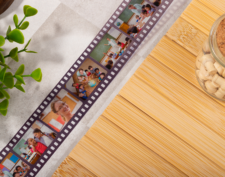 • Llavero de carrete de fotos con tira de 8 imágenes. • Tarjeta Recordatoria.