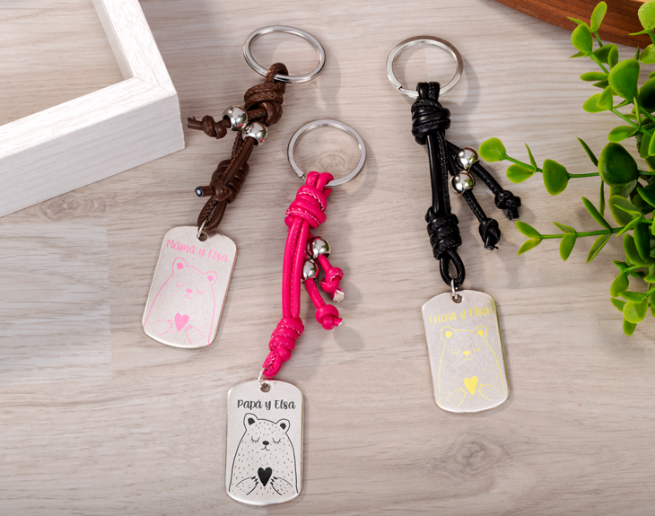 Si tienes pareja o quieres mucho a tus padres, ya sabrás que el amor no es algo que se da por hecho. ¡Se tiene que demostrar cada día! Si estás lejos de las personas que quieres o simplemente quieres recordarles a cada momento lo mucho que las quieres, haz que lleven siempre en su bolsillo este llavero colours personalizado. Junto a nuestro osito amoroso con un corazón, podrás grabar el texto o los nombres que quieras. ¡Y no solo podrás escoger el color del grabado! Tu llavero puede venir anclado al material de cuero o madera con diferentes colores. En el primer caso, podrás escoger desde el color de cuero hasta la forma de la anilla. En el segundo caso, podrás añadir un bloque de madera del color de sus ojos o su color favorito. ¡Para que vea que aprecias cada detalle. Personaliza tu producto en cada mínimo detalle para tener un gran regalo original para el Día de la Madre o para parejas. Añade el producto al carrito y comienza a preparar tu grabado personalizado y todo el soporte de este mágico llavero colours. Medidas: 3,8 x 2,5 cm.