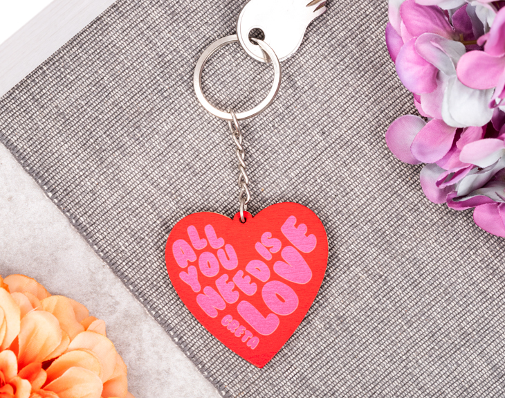 • Llavero madera corazón rojo. • Tarjeta Recordatoria.