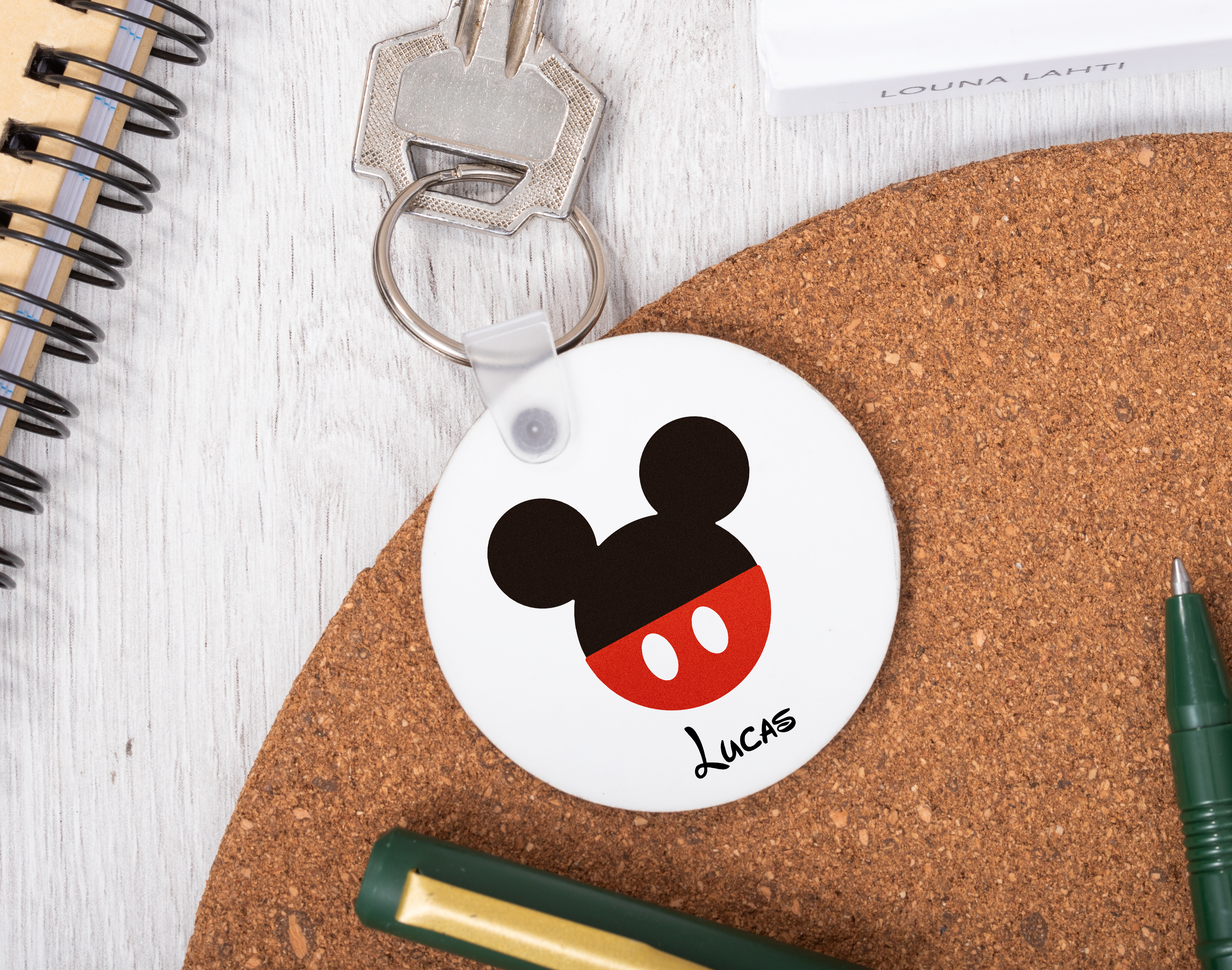 ¿Te sabes las canciones de El Rey León de memoria? ¿Tu gran sueño es visitar Disneyland? ¿Conoces los nombres de todas las princesas Disney? Si has contestado sí a todas estas preguntas, estamos seguros de que el llavero personalizado Mickey & Minnie es perfecto para ti. Este llavero se personaliza con un diseño inspirado en Mickey o Minnie (puedes elegir el personaje a tu elección) y con el nombre que nos digas. Además, tienes la opción se escoger hasta tres formas diferentes de llavero, hasta conseguir así un detalle único y pensado solo para ti: - Llavero cuadrado: de madera, con una lámina blanca en la parte superior donde va impresa la imagen. Mide 5,5 cm x 5,5 cm. - Llavero circular: de plástico polipropileno, y tiene 4 centímetros de diámetro. - Llavero con forma de corazón: perfecto para los más románticos. Mide 6,5 cm x 6 cm. ¡Prueba a pedir dos llaveros a juego!