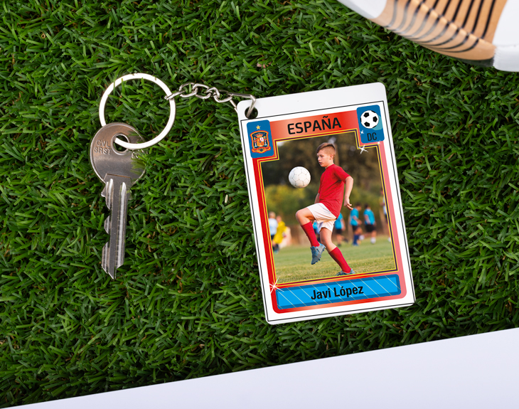 El fútbol es un deporte para compartirlo. Los verdaderos aficionados lo disfrutan jugando y también cuando lo ven en el estadio o desde casa en la televisión. Es un deporte que mueve masas y que tiene millones de fanáticos por todo le mundo. Además, es genial poder compartir tu pasión por este deporte con gente que lo vive igual que tú. Por eso, si quieres hacer el mejor regalo del mundo o darte un capricho, este llavero de metacrilato personalizado es el detalle perfecto para los auténticos aficionados al fútbol. Seas del equipo que seas, no te preocupes porque este original llavero es perfecto para cualquiera. Hecho de metacrilato y con un diseño que es un cromo de fútbol, seguro que aciertas con este súper regalo para esa persona que no se pierde ni un partido. Podrá llevar en sus llaves de casa, del coche o del trabajo este llavero. ¡Será la envidia de todos! Para terminar de rematar este regalazo, tendrás que personalizar el producto a tu medida. Nosotros te dejamos el diseño para que tú te encargues de rellenar todos los espacios. Añade la foto y texto que quieras, sin olvidarte de todos los detalles que lleva un cromo de verdad. No querrás ponerte otro llavero en las llaves que no sea este. ¡Hecho especialmente para ti! Medidas: 8cm x 5,5cm x 0,3cm aproximadamente.