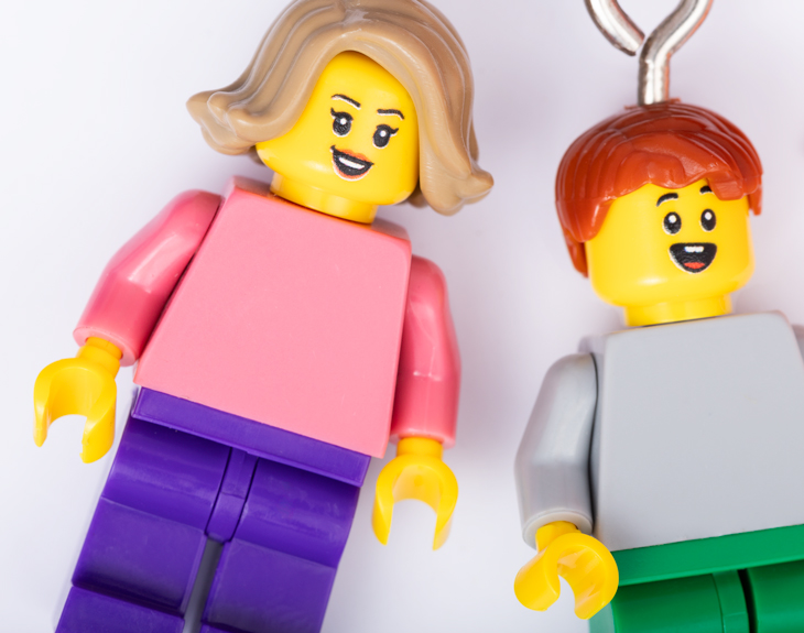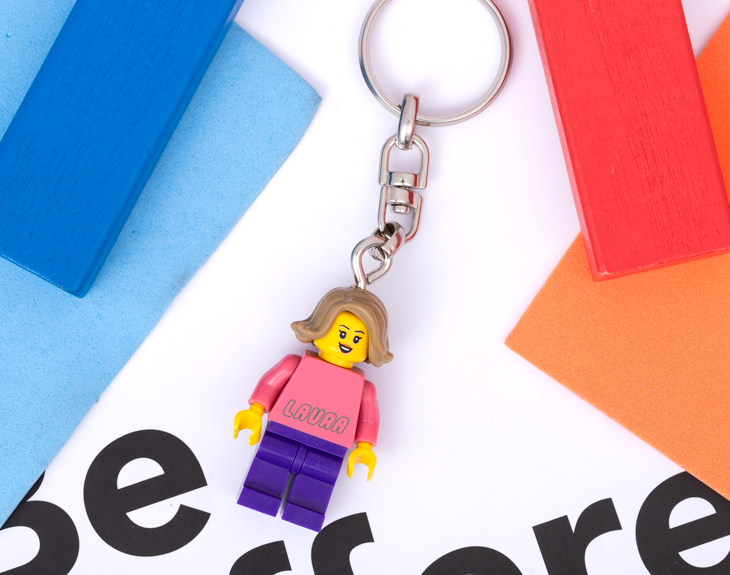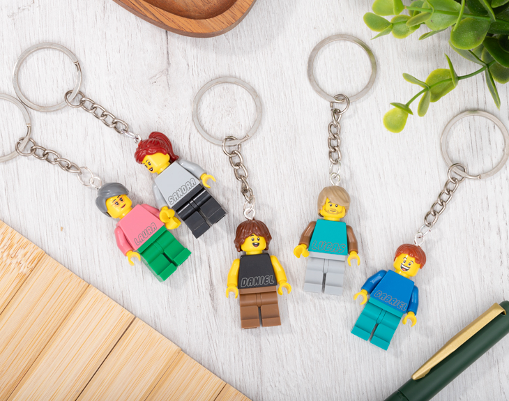 • Llavero minifigura Lego. • Tarjeta recordatoria.