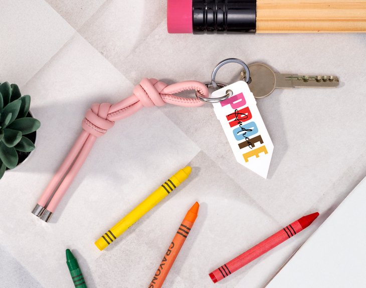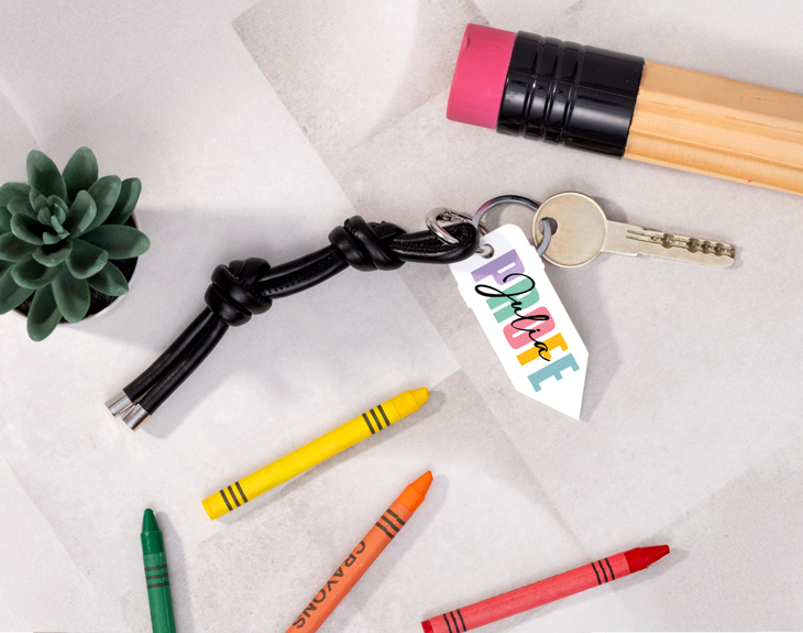 • Llavero rectangular de metacrilato personalizado 5 x 6,5 cm. • Tarjeta Recordatoria.