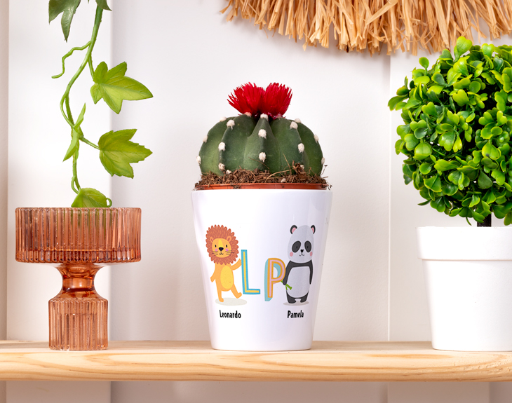 ¿Quieres que tus hijos sean tan aficionados a la jardinería como tú? Para motivarlos, nada como dotarles de un equipo de jardinería a su gusto, empezando por esta preciosa maceta personalizada Alfabeto animales. Un detalle adorable para todos los pequeños jardineros, que podrás personalizar solo para él o ella. Esta maceta llena de color y diversión es ideal para los más pequeños, gracias a su cuidado diseño. Escoge la inicial con el nombre de tu peque o de toda la familia y disfruta de sus preciosos animales. ¿Te ha tocado el león, la ardilla o el mapache? Pasaréis un rato genial buscando vuestro animal a medida. Tanto si buscas un regalo original para tu hijo como si quieres sorprender a ese amante de los animales al que tanto quieres, nuestra maceta personalizada Alfabeto animales es un detalle con el que dejar sin palabras hasta a los más exigentes. ¡Cuidar plantas nunca será tan divertido como ahora! Importante: La disposición de los personajes será realizada por nuestros diseñadores gráficos, adaptando el número de personajes lo mejor posible para conseguir un resultado óptimo. Importante: El tipo de cactus puede variar según stock.