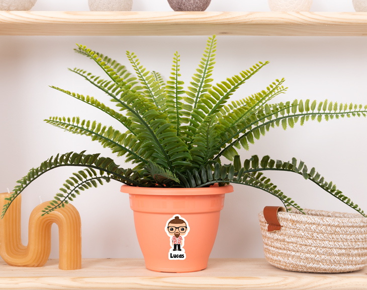 ¿Te encanta pasar tiempo cuidando de tus plantas? Nosotros te ayudamos a que sea aún más divertido. Esta maceta personalizada con un Tinok es un elemento que no puede faltar en tu kit de jardinería. Hazte con ella y tu huerto será la envidia de todas las visitas. ¡Todos querrán tener una maceta igual de chula! Si eres un fan de los Tinoks de pelis y series, sin duda, esto te va a encantar. Puedes personalizar esta maceta con un personaje Tinok diseñado por ti y poniendo tu nombre. Esta maceta también se puede convertir en un regalo muy original y personal. Cada vez que riegue sus plantas, la persona que lo reciba se acordará de ti y de lo mucho que lo aprecias. ¡A cualquiera le encantará tener su propio personaje Tinok en su maceta! Personalizar esta maceta es algo muy sencillo. El primer paso es añadir el producto al carrito y entrar al área de personalización. Lo siguiente es diseñar el personaje Tinok, eligiendo los accesorios y rasgos que quieras y escribir un nombre. Una vez terminado, ¡nosotros nos encargamos del resto! Colores disponibles y altura: - Verde, azul y fucsia: 12 centímetros. - Gris y naranja: 11 centímetros. Material: plástico.