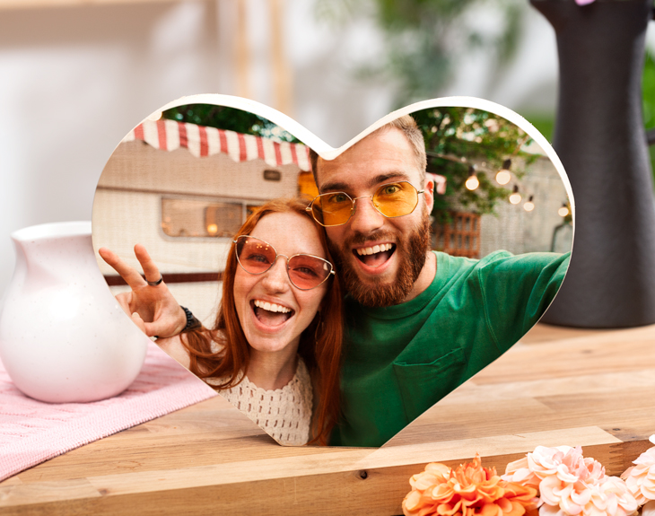 Lo último en el amor es esta madera con forma de corazón para que le des una sorpresa a tu pareja cuando menos se lo espere. Un regalo romántico que lo va a recordar siempre. Personaliza la foto con una de las fotos más dulces y románticas que tengáis juntos, y verás cómo le dejas boquiabierta a tu pareja. ¡Qué tierno es todo! Aprovecha en San Valentín, en su cumpleaños o en vuestro aniversario para hacerle más feliz todavía. Medidas: 30 x 22 x 3 cm. Importante: Las maderas tienen vetas y estas quedan reflejadas en la imagen.