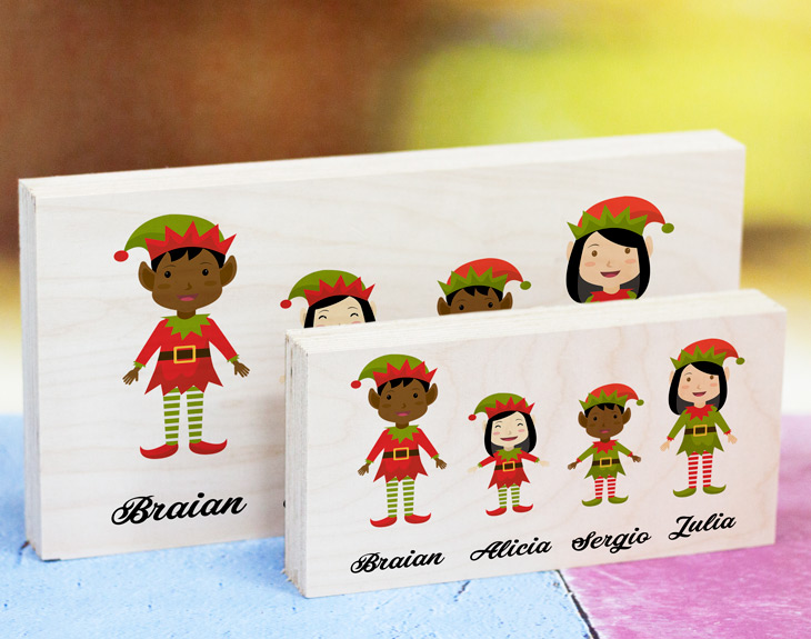 ¿En tu familia vivís mucho la navidad? Entonces que mejor regalo para decorar vuestra casa aún más navideña que esta madera personalizada. Esta madera es perfecta para decorar las mesas de navidad y darle ese toque divertido a vuestras comidas y cenas navideñas. Además, lo más divertido de estas madera es que podréis personalizarla con los personajes que queráis y añadir vuestros nombres. Vuestra casa será mucho más divertida estas navidades con esta madera Familia Elfos. ¿No os parece una idea increíble? Dimensiones: - 30 x 15 cm: hasta 8 miembros. - 20 x 10 cm: hasta 6 miembros. Importante: Las maderas tienen vetas y estas quedan reflejadas en la imagen Importante: a partir de 6 personajes irán distribuidos en dos filas. Es decir: - Familia de 6 personajes: 3 en la fila superior, y 3 en la inferior. - Familia de 7 personajes: 4 en la fila superior, y 3 en la inferior. - Familia de 8 personajes: 4 en la fila superior, y 4 en la inferior.