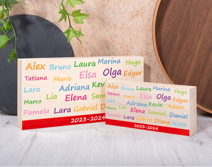 Nuestra madera personalizada para profes es tan original que tu profesor se quedará boquiabierto cuando le entreguéis el regalo el último día de clase. Nos acercamos a una época muy divertida que da comienzo al verano y al fin de curso. Pero, no podemos olvidarnos de los mejores profesores de este año. ¿Queréis hacerle un regalito de parte de todos los compañeros de clase? Esta madera es genial para sacarle una sonrisa. Solo tenéis que escribir los nombres y el curso, y lo tendréis hecho. Tenemos dos tamaños disponibles: - 20 x 10 cm. - 30 x 15 cm.
