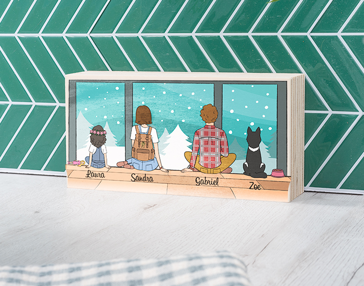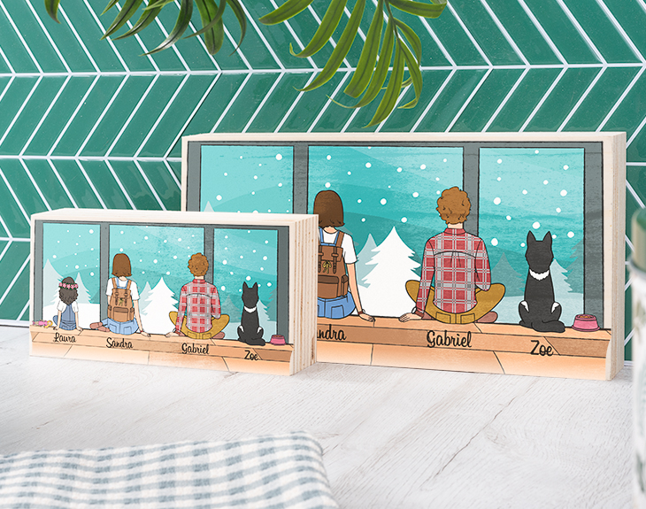 Seguro que quieres conservar de la mejor manera esos momentos tan especiales junto a tu familia o amigos. Tenemos el mejor marco y diseño para que lo recuerdes de una manera tan creativa como bonita. Sorpréndeles a todos con esta madera personalizada. Será su perfecto elemento de decoración para el hogar, ya que podrán colocarlo en cualquier rincón de su salón o habitación gracias a sus dos tamaños disponibles que permiten que se mantenga por sí solo, sin sujeción. Si os gusta la nieve, el bosque o simplemente contemplar la naturaleza por la ventana, este diseño con un fondo nevado está hecho para vosotros. Quedará precioso impreso sobre la madera y podrás escoger los personajes y nombres que quieras. ¡Disfruta eligiendo el que más se os parece entre los más de 300 disponibles! Ya sea para tener un recuerdo de ese viaje tan especial, de esos compañeros de piso especiales o de tu familia, este es el regalo original que os llegará al corazón. ¡Hasta con mascotas y todo tipo de accesorios! Importante: Se pueden escoger hasta un máximo de 6 personajes que aparecerán en la misma línea. Dimensiones: - 30 x 15 x 4,2 cm: hasta 8 miembros. - 20 x 10 x 4,2 cm: hasta 6 miembros. Importante: Las maderas tienen vetas y estas quedan reflejadas en la imagen.