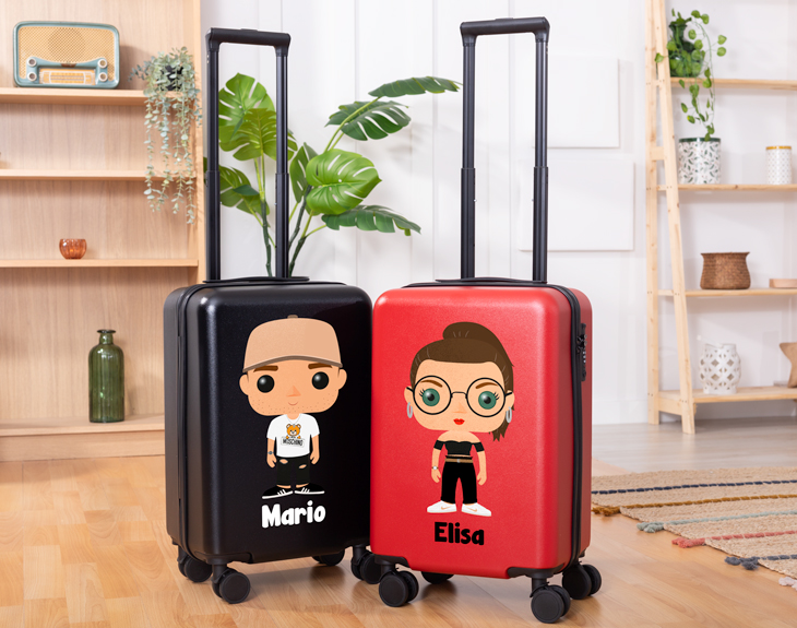 Maleta personalizada... ¡con un personaje Funko! Elige entre más de 450 opciones y crea una maleta única e irrepetible, con la que no habrá nunca ningún tipo de confusión en el aeropuerto. El interior de la maleta tiene distintos compartimentos, para que puedas diferenciar la ropa y que tu viaje sea muy fácil. Además, tiene ruedas que giran 360º y un agarre firme pero natural: ¡la maleta perfecta! La maleta tiene dimensiones de mano, con lo que podrás llevarla contigo en el avión en la mayor parte de las aerolíneas (easyJet, Iberia, Vueling y muchas otras). Importante: nuestro equipo de personalización se encargará de ajustar la distribución de los personajes en el producto en función de su tamaño para que se vean lo mejor posible. Especificaciones: • Maleta de cabina: 55cm x 35 cm x 20 cm - Disponible en rojo y negro • Maleta mediana: 67cm x 42cm x 23 cm - Disponible en blanco • Maleta grande: 74cm x 47cm x 29 cm - Disponible en blanco