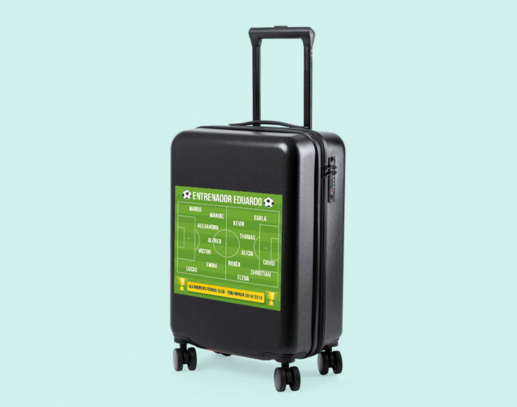 ¿Tus hijos quieren hacerle un regalo original a su entrenador de fútbol? Esta maleta personalizada es perfecta para sorprender al mejor míster de la temporada y de los últimos años. Podréis personalizar la maleta con los nombre de todos los jugadores o jugadoras del equipo, y también incluir el del entrenador o entrenadora. ¿Cuántas veces os habéis tenido que ir de viaje por competiciones? Imagínate a tu míster con esta maleta por el aeropuerto. ¡El mejor regalo del mundo! La maleta tiene una distribución perfecta con distintos compartimentos para que pueda aprovechar el espacio al máximo. Asimismo, las ruedas giran 360º lo que la convierte en una maleta muy cómoda y práctica. Tiene dimensiones de mano, con lo que podrás llevarla en el avión en la mayor parte de las aerolíneas (easyJet, Iberia, Vueling y muchas otras).