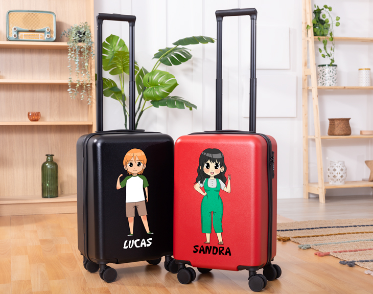 ¿Las vacaciones de verano siempre están reservadas para disfrutarlas con tu familia? ¿Ya habéis pensado en el viaje de este año? Es el momento perfecto para que llegue a casa con una sorpresa enorme: esta maleta personalizada con una familia Anime adorable. Solo tendrás que elegir los personajes que quieras y ponerles nombre. ¿No es el mejor regalo del mundo para una familia como la tuya? Anímate y empieza a personalizar la maleta de viaje de este año. Además, tiene una distribución perfecta con distintos compartimentos para que pueda aprovechar el espacio al máximo. Asimismo, las ruedas giran 360º lo que la convierte en una maleta muy cómoda y práctica. Importante: nuestro equipo de personalización se encargará de ajustar la distribución de los personajes en el producto en función de su tamaño para que se vean lo mejor posible. Especificaciones: • Maleta de cabina: 55cm x 35 cm x 20 cm - Disponible en rojo y negro • Maleta mediana: 67cm x 42cm x 23 cm - Disponible en blanco • Maleta grande: 74cm x 47cm x 29 cm - Disponible en blanco