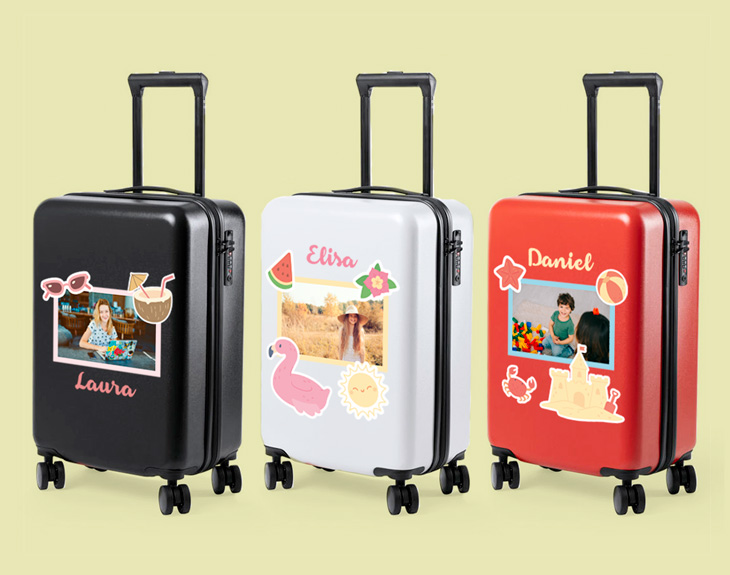 Ver una maleta significa verano: vacaciones, playa, solecito, helados, bebida fresca… ¡Llenarla de cosas es el primer paso para empezar a disfrutar de todas esas actividades que tanto te gustan! Sabemo que es tan necesario como especial tener este complemento de viajes, y por ello no queremos que tengas una cualquiera: este año, disfruta desde el primer segundo con esta maleta personalizada con nombre, foto y dibujos. ¡Con varios diseños y colores a elegir desde el carrito!