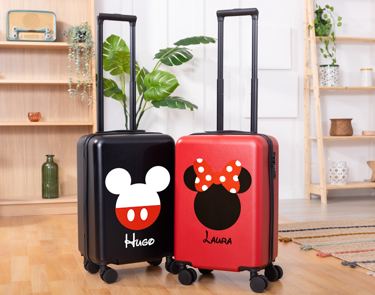 La maleta del momento para las personas que siguen viviendo con ese espíritu infantil tan bonito e inocente. Si tu pareja, tu mejor amigo o un conocido siente admiración todavía por Mickey y Minnie, es el momento de hacerle un regalo original perfecto. ¿Te encanta hacer reír a los demás? Esta maleta personalizada es genial para sorprender a las personas más inocentes, alegres y transparentes del mundo. Solo tendrás que elegir si quieres a Minnie o a Mickey, y añadir el nombre de la persona que se irá de viaje con esa maleta. ¡Seguro que le hace una ilusión tremenda! El interior de la maleta tiene distintos compartimentos, para que puedas diferenciar la ropa y que tu viaje sea muy fácil. Además, tiene ruedas que giran 360º y un agarre firme pero natural: ¡la maleta perfecta! La maleta tiene dimensiones de mano, con lo que podrás llevarla contigo en el avión en la mayor parte de las aerolíneas (easyJet, Iberia, Vueling y muchas otras).