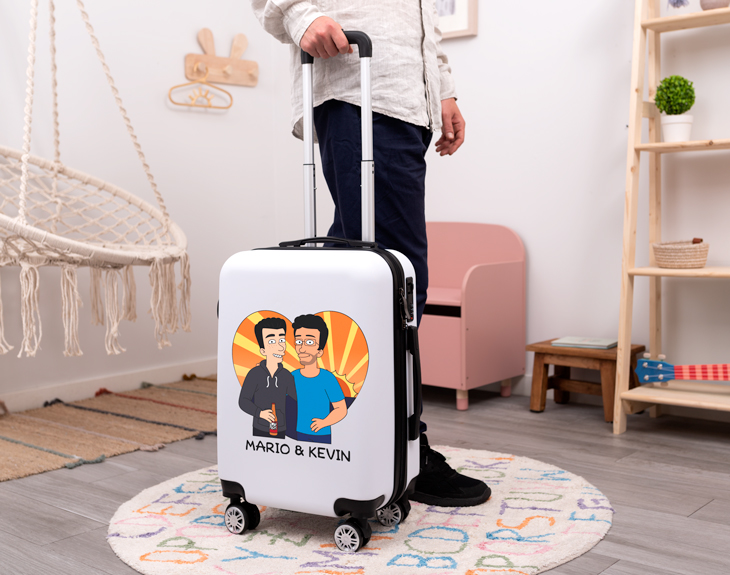 ¿Te mueres de ganas por hacer ese viaje que tanto deseas con tu pareja? Si, además de pareja os habéis convertido en los mejores compañeros de viaje y estáis todo el tiempo de un lado para otro, esta maleta con dibujo Cartoon es perfecta. No esperes más y sorprende a tu otra mitad con este regalo tan especial para enamorados. Viaja cómodo y olvídate de perder la maleta o de que otra persona se lleve esta maleta por confusión, porque al ser personalizable será súper reconocible y no habrá otra igual. Además, la maleta tiene una distribución perfecta con diferentes compartimentos para que se pueda aprovechar al máximo el espacio. Asimismo, las ruedas giran 360º lo que la convierte en una maleta muy práctica y cómoda. Lo más especial de este producto es que es personalizable, lo que quiere decir que puedes diseñar estos dibujos animados tú mismo. Podrás elegir entre un montón de accesorios y rasgos diferentes, seguro que consigues que estos dibujos os representen. Y para personalizarlo, solo tienes que añadir el producto al carrito y entrar al área de personalización. Y una vez ahí, crearás a los personajes de cero. ¡Ya verás que divertido! Tiene dimensiones de mano, con lo que podrás llevarla en el avión en la mayor parte de las aerolíneas (easyJet, Iberia, Vueling y muchas otras).
