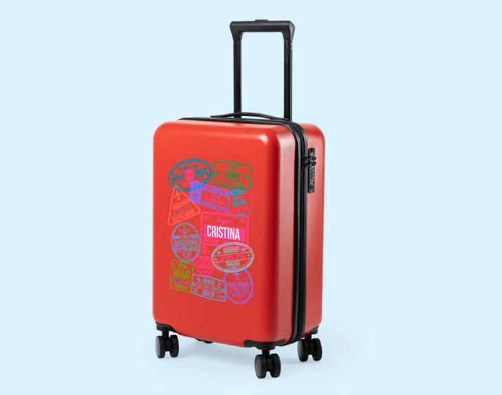 ¿Te encanta viajar? ¿Eres de los que coleccionas chapas, sellos, pins, o cualquier accesorio de todos los países que visitas? Esta maleta personalizada te define muy bien. Se trata de una maleta perfecta para sorprender a cualquiera en el aeropuerto. Se personaliza con el nombre que tú quieras, para que puedas sorprender a cualquiera persona aventurera. Además, la maleta tiene una distribución perfecta con distintos compartimentos para que pueda aprovechar el espacio al máximo. Asimismo, las ruedas giran 360º lo que la convierte en una maleta muy cómoda y práctica. Tiene dimensiones de mano, con lo que podrás llevarla en el avión en la mayor parte de las aerolíneas (easyJet, Iberia, Vueling y muchas otras). Especificaciones: • Maleta de cabina: 55cm x 35 cm x 20 cm - Disponible en rojo y negro • Maleta mediana: 67cm x 42cm x 23 cm - Disponible en blanco • Maleta grande: 74cm x 47cm x 29 cm - Disponible en blanco