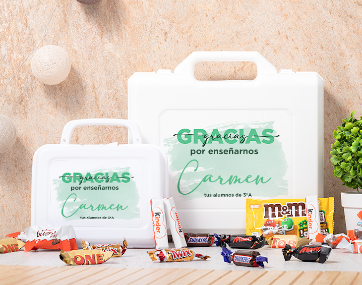 ¡Y cuantísimas cosas les tenemos que agradecer a esos profesores! Además, este año ha sido muy complicado para todos, y estos docentes han tenido que vérselas con muchísimos obstáculos para poder llevar el curso con normalidad. ¿Te gustaría darle las gracias por todos los esfuerzos que ha hecho a lo largo del año escolar? El maletín de dulces personalizado "Gracias por..." es la mejor opción".
